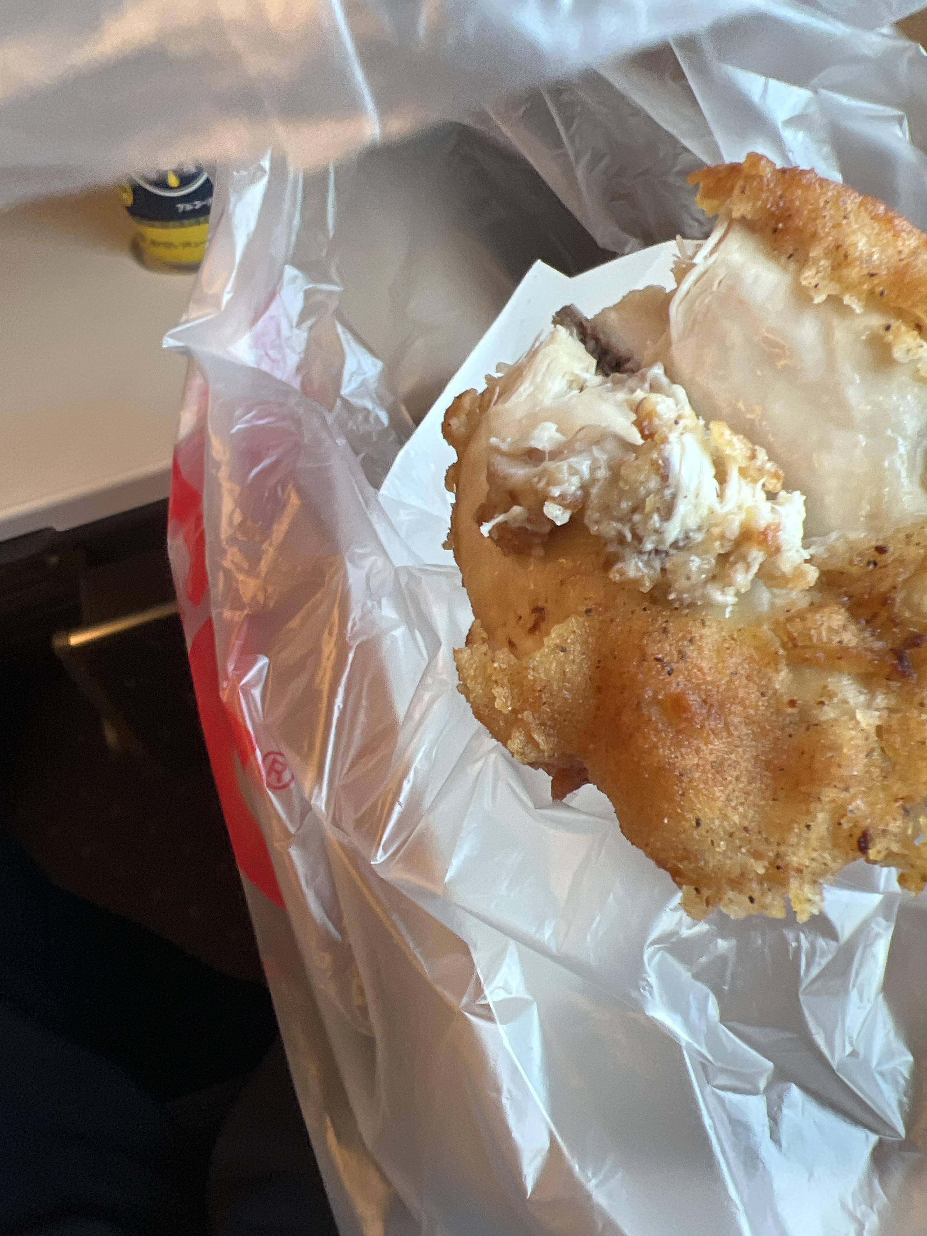 よう考えると手が汚れるケンタッキーって電車で食べるのに一番向いてへんやろ