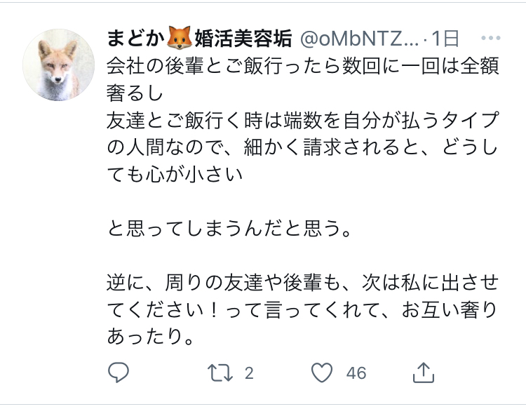 奢ってもらって当たり前とか考えてる時点でどうかと思うわ