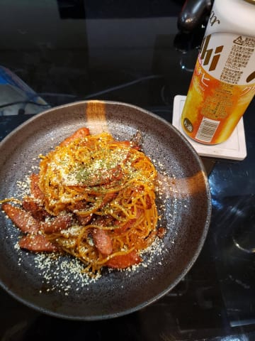 【画像】お昼なので簡単ナポリタン作るんご