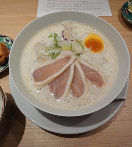 鶏白湯ラーメンにはチンゲン菜と蒸し鶏派。