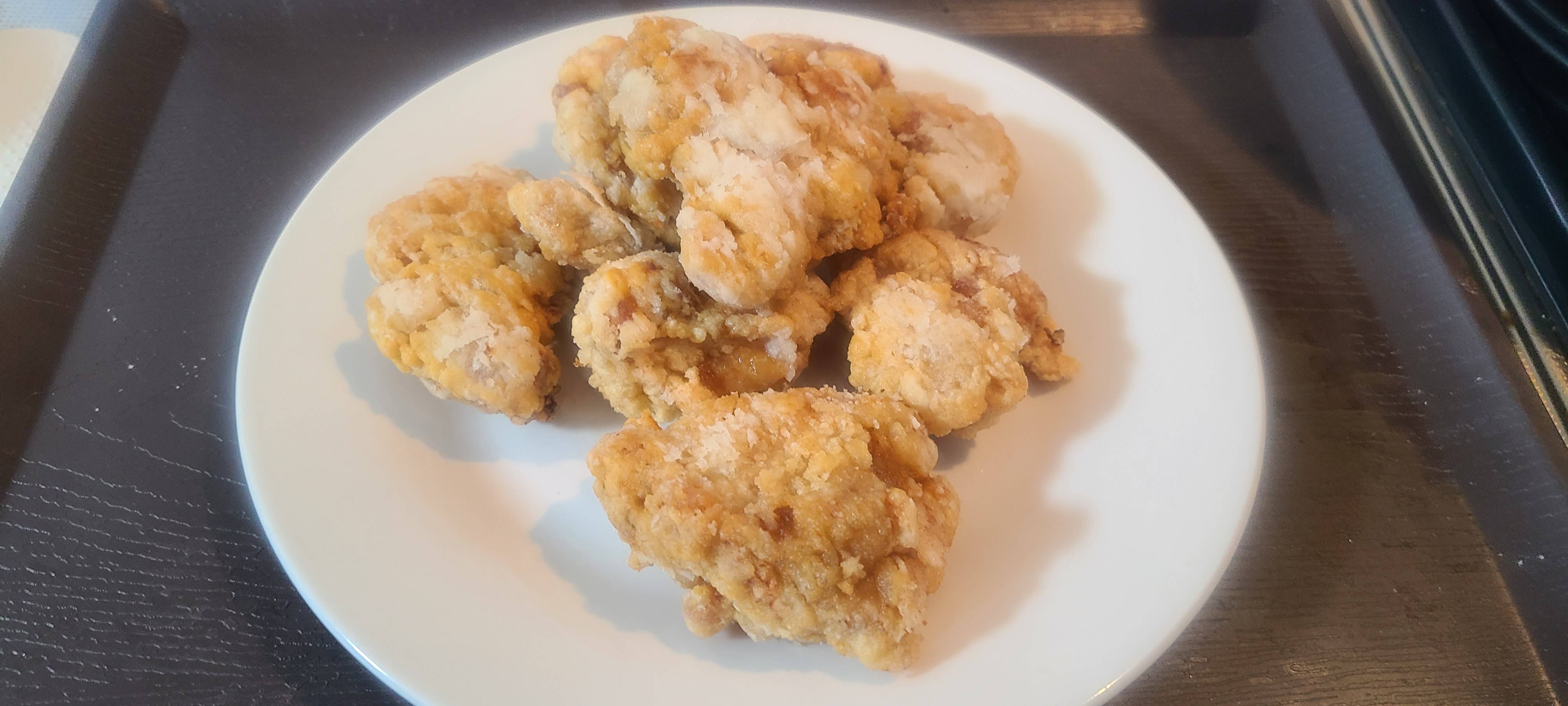 下味は思ったより着いてたけど肉汁は出なかった、衣でっかくつけるの難しい