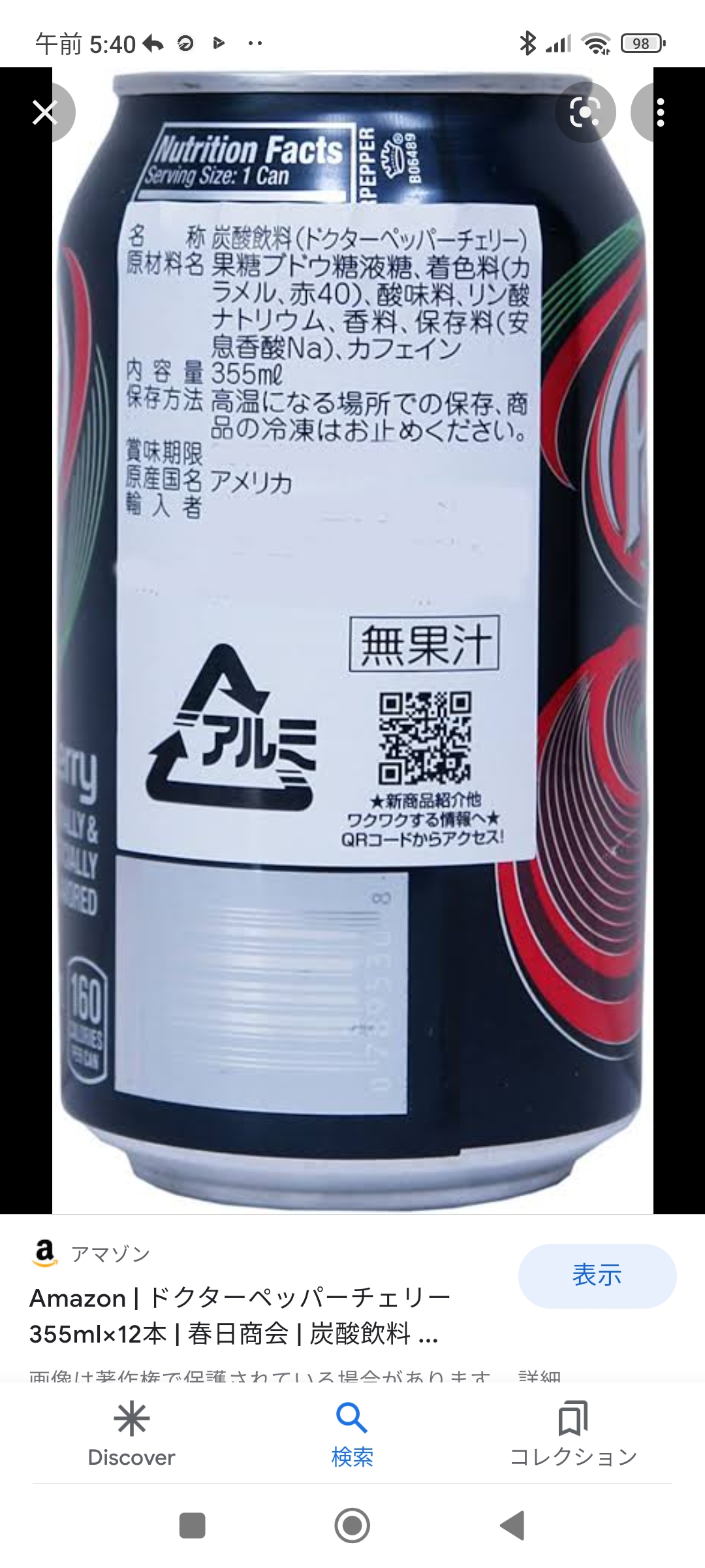 前にドクターペッパー輸入して味違うから原材料みたら向こうのはブドウ糖果糖液糖入ってなかったはず