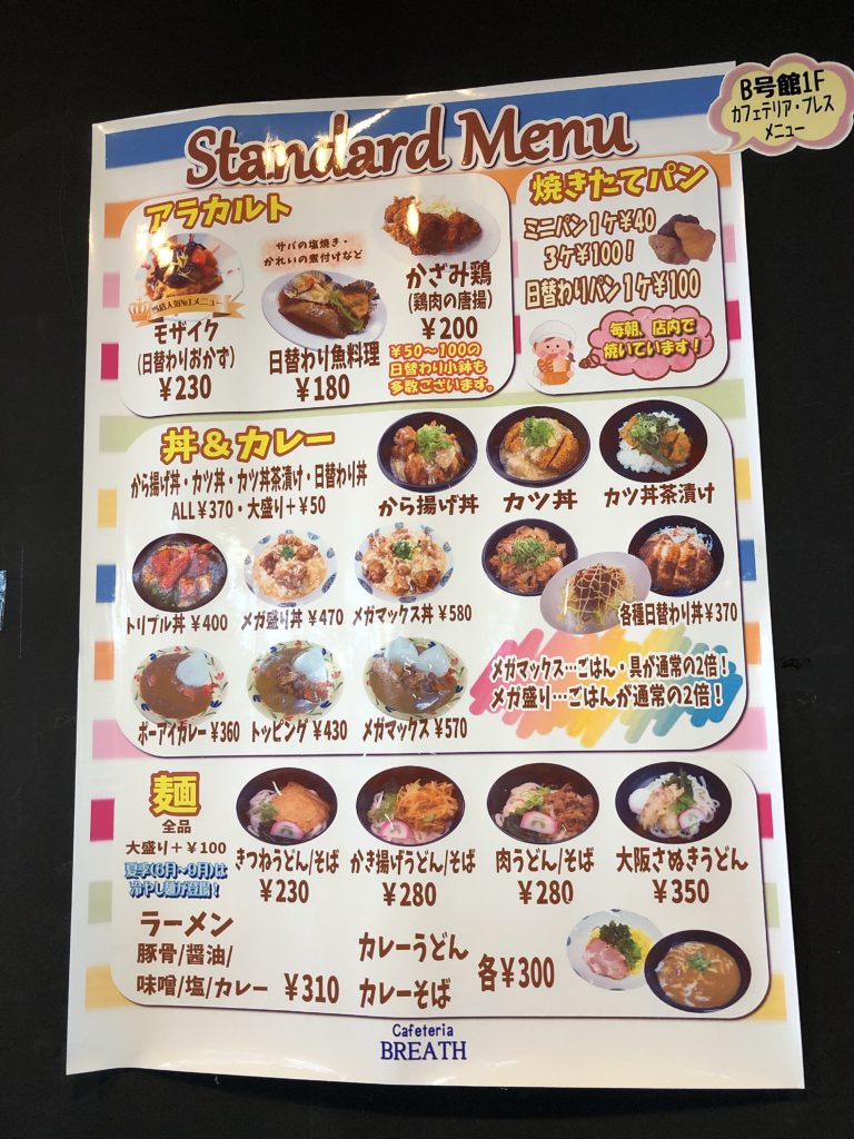 学食のメニューはこんな感じやな