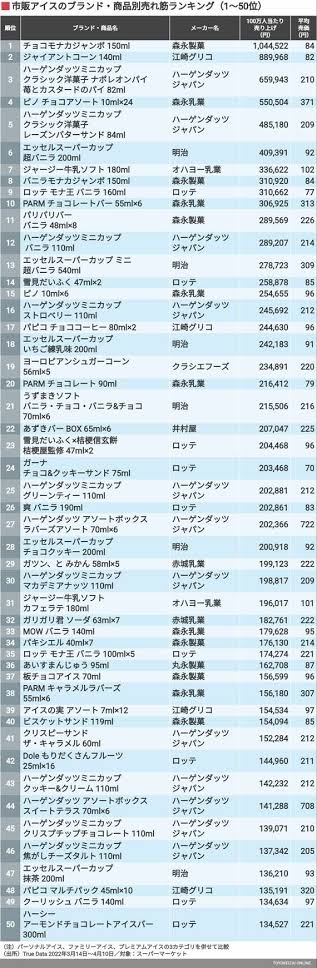 1個辺りが安いチョコモナカジャンボが1位なのは異常