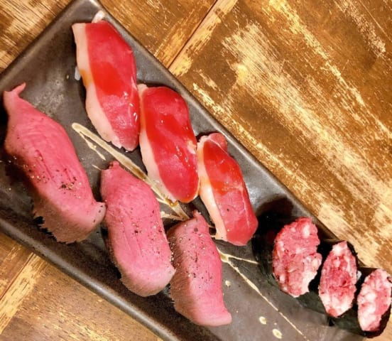 この前行った居酒屋、ネット予約サイトに掲載されていた写真と実際に出てきた肉寿司みて pic.twitter.com/7vt26OL6AF