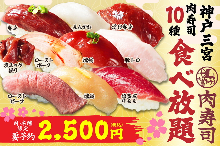 【画像】神戸の肉寿司食べ放題がやばすぎるwwwww