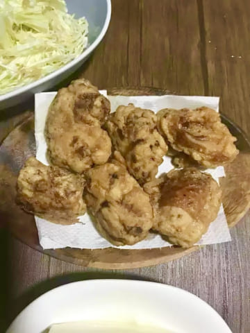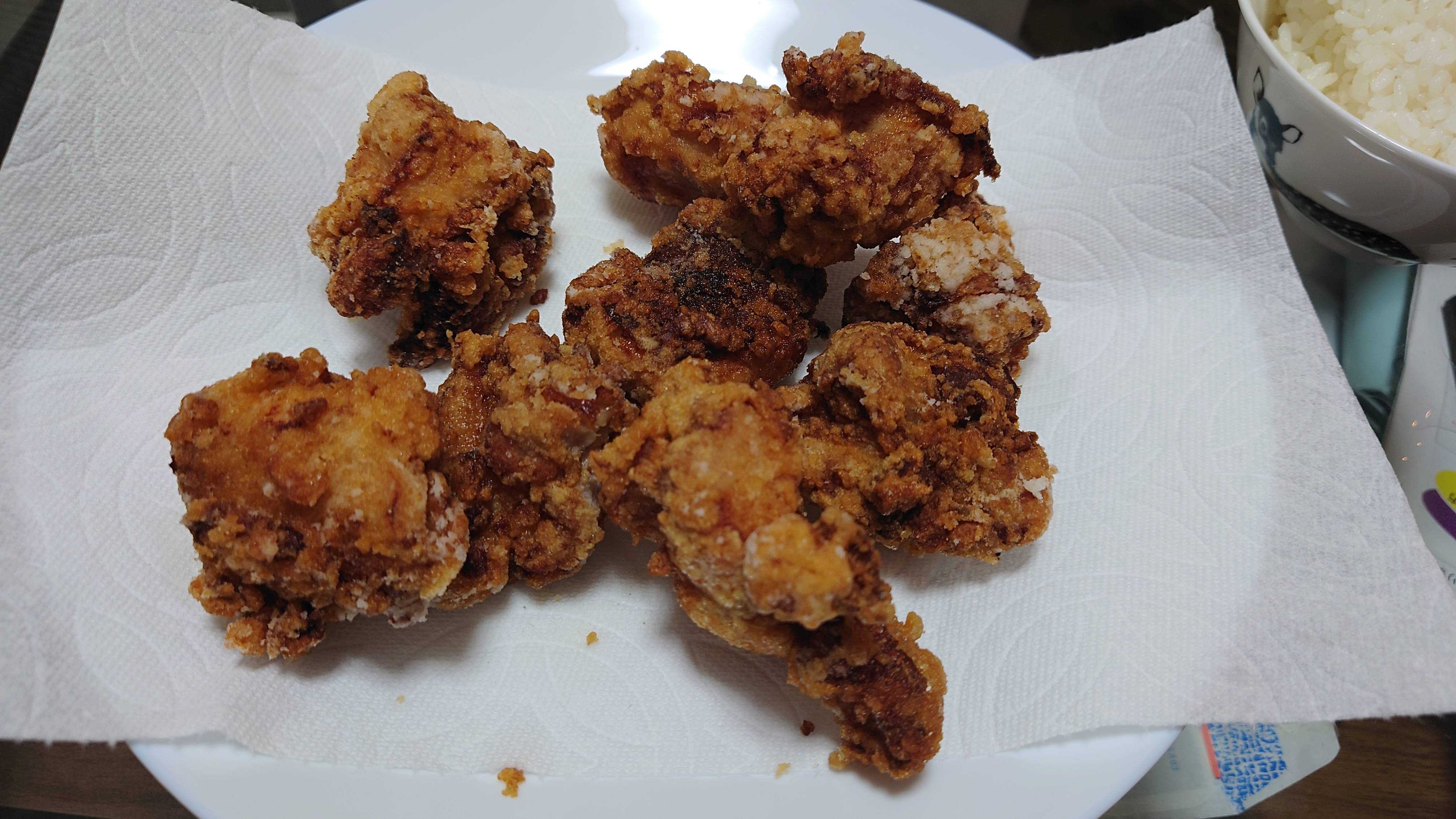 わいは適当なサイズに鶏胸肉カットしてめんつゆとチューブの生姜、ニンニク適当に半日漬けて片栗粉まぶして揚げるわ