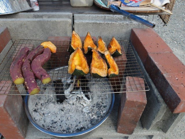 鍋に石と芋入れてストーブで焼くのおおおお。
