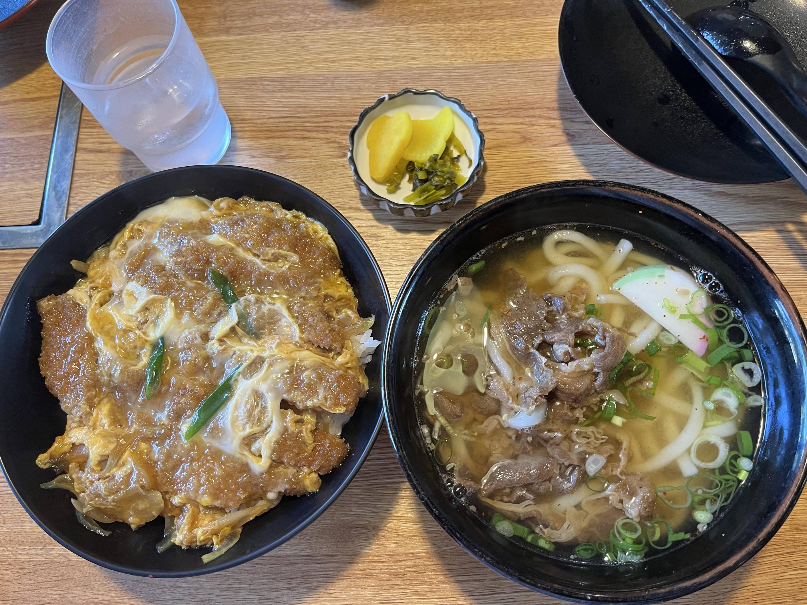 甘いカツ丼に甘い肉うどん合わせたら意味ないやろ