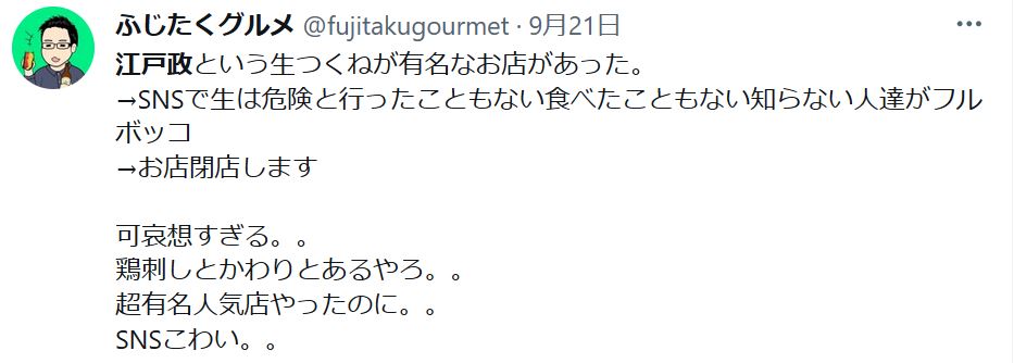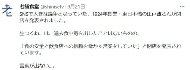 閉店するタイミングを探してたところで食中毒の危険性を指摘されたので被害者ぶりつつ閉店するいい機会だと乗っただけとしか思えない