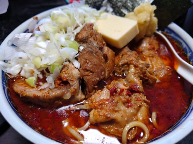 スープは、白湯に、唐辛子大量、赤味噌、ラード、だしの素、ハイミー。