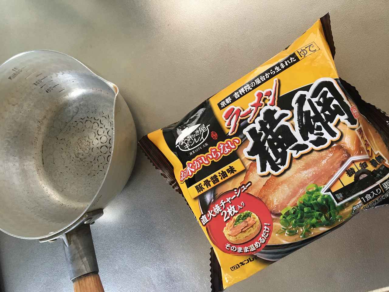 今はアルミ鍋付き冷凍火にかけるだけのラーメンあるし