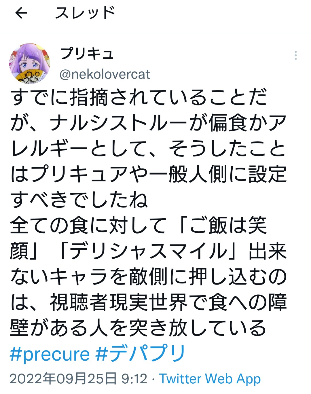 【悲報】プリキュア新作、”食事を楽しめない人”を悪人として描き炎上