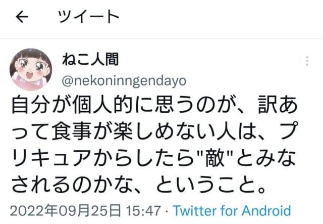 週に一回の楽しみしか生きる意味を見いだせなくなったプリおじとかまさしく食事をたのしめない側の人間だろうしな