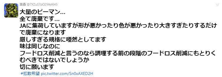 フードロス削減ってのは「非効率なことはやめましょうね」って話で、自然に採れすぎちゃう野菜をわざわざ減産したり、無理やり出荷する必要ないんだよ。ピーマンが不作で高騰してますとかなら話は別やけど