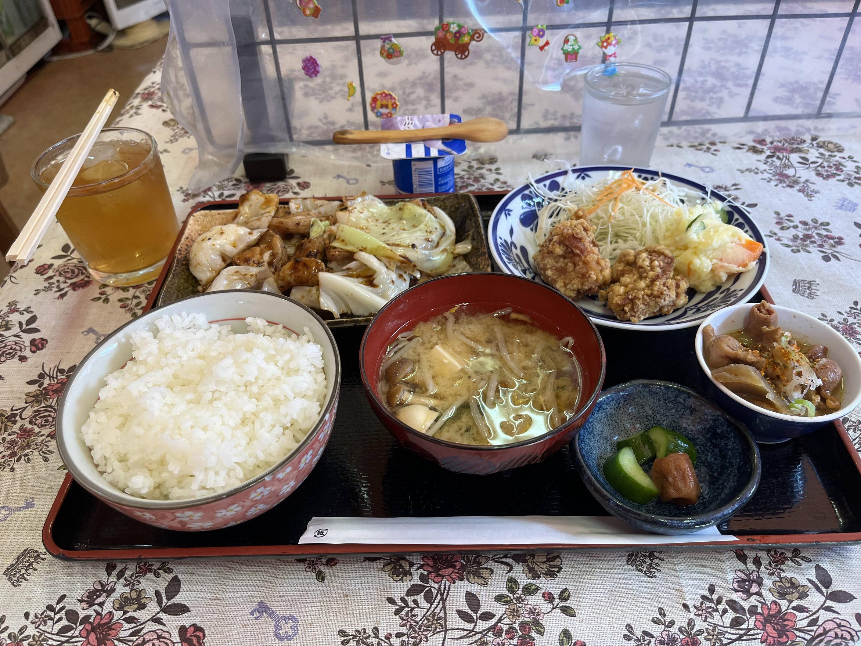 何で定食に付く小鉢が唐揚げとモツ煮なんでよw