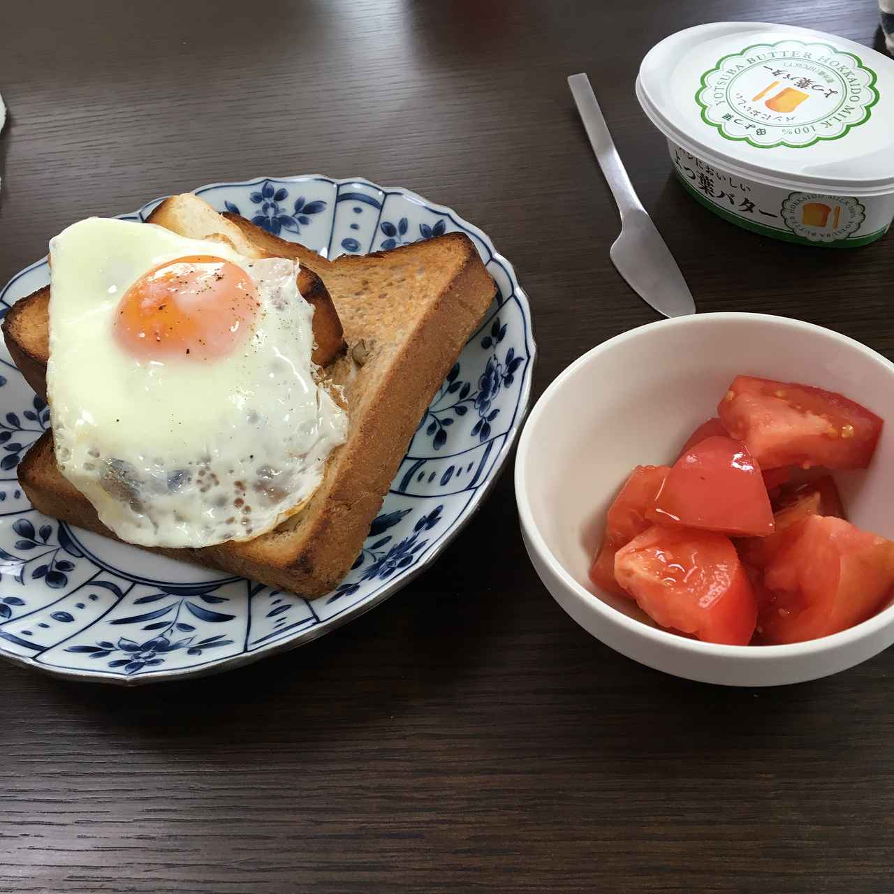 食パンに目玉焼きを乗せるだけ