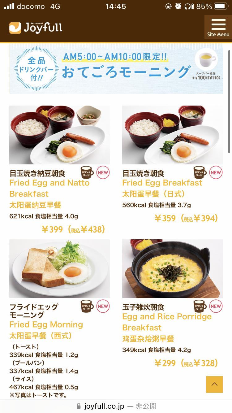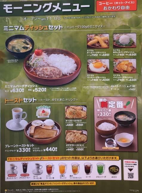 公式サイト見るとドリンクバーはついてるみたいだし、喫茶店のモーニングと比べてもまだ割とお得な方だと思う。