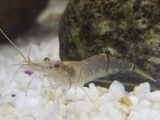 ミナミヌマエビだと苔食ってくれるし淡水でも繁殖出来るし取れるなんて最高やな