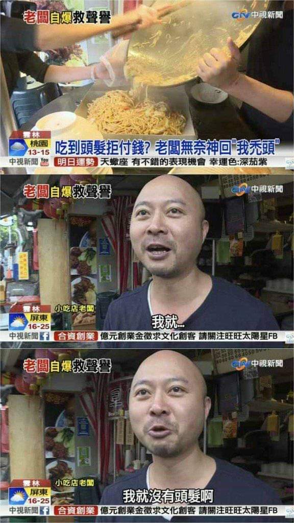 客「お前んとこで買った焼きそばに髪の毛入ってた!弁償しろ」