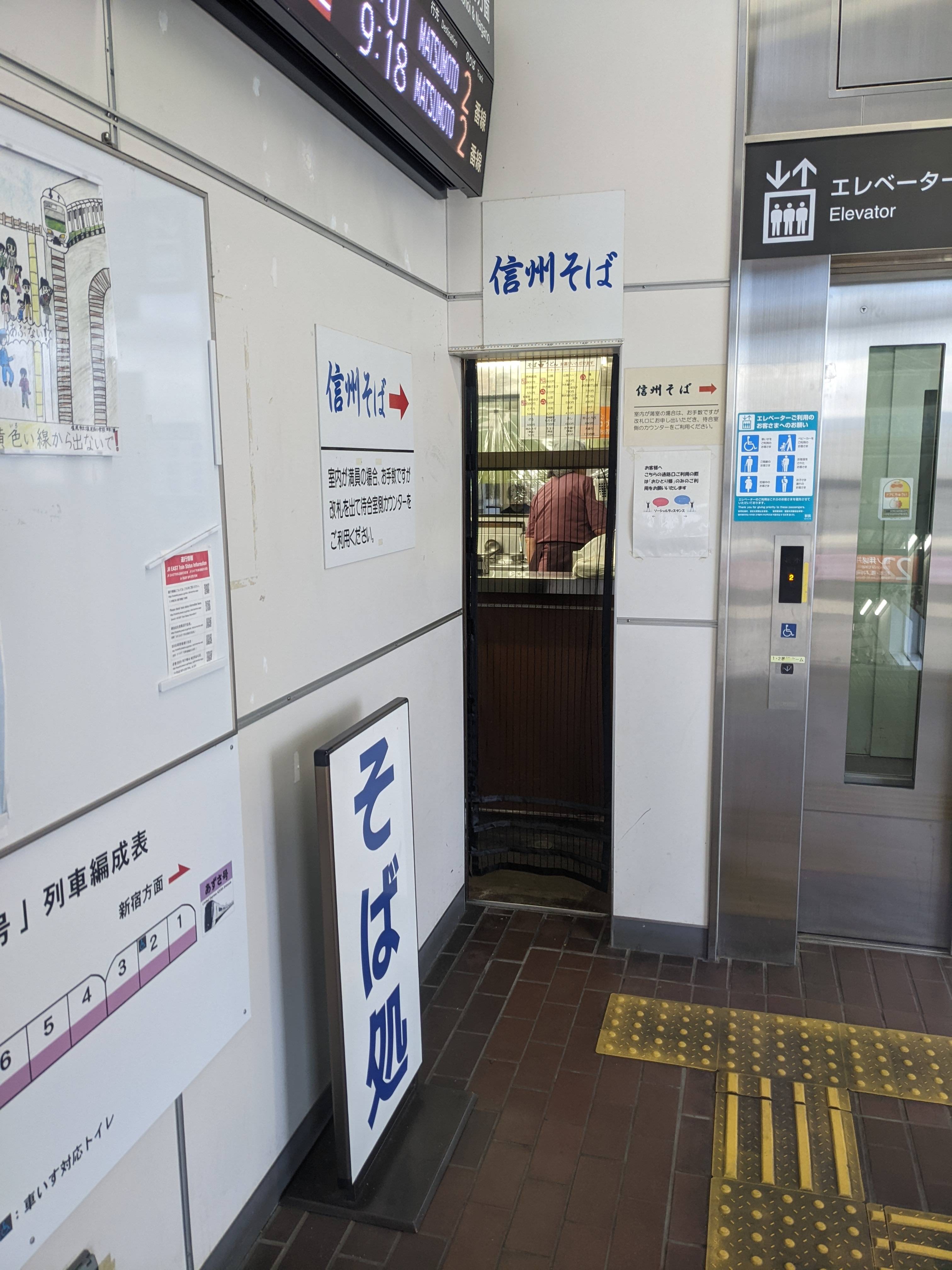 塩尻の駅そばは狭い方に先客がいて入れない場合は駅員にその事を言うと