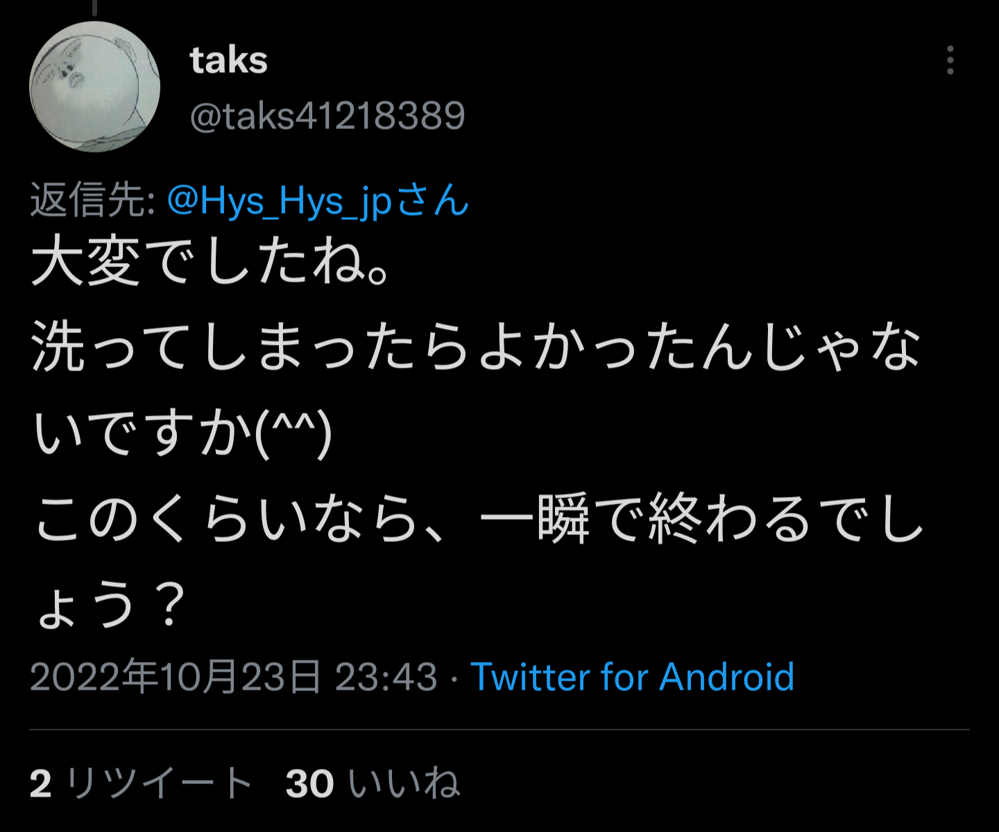 1分もかからない量の洗い物を放置してヒスられてるとか、こいつが無能なだけじゃねーか