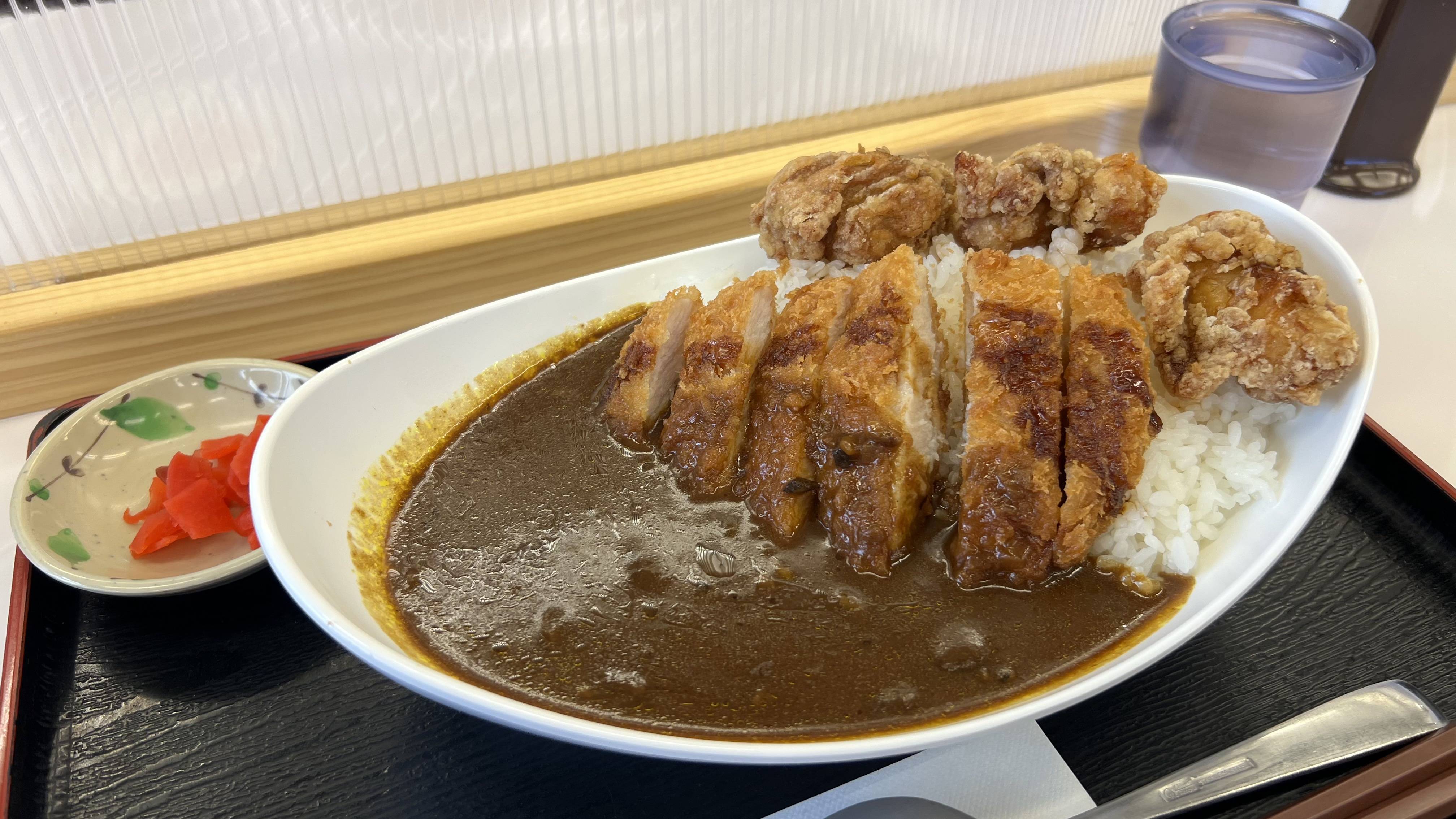大盛りでとんかつ唐揚げ乗ってて1000円のカレー