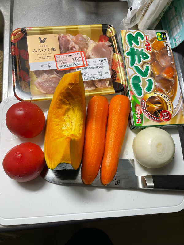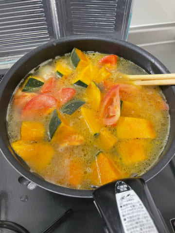 ちな、カボチャとトマトは冷蔵庫にあったから入れとる 普段はニンジン玉ねぎ鶏ももor豚バラや