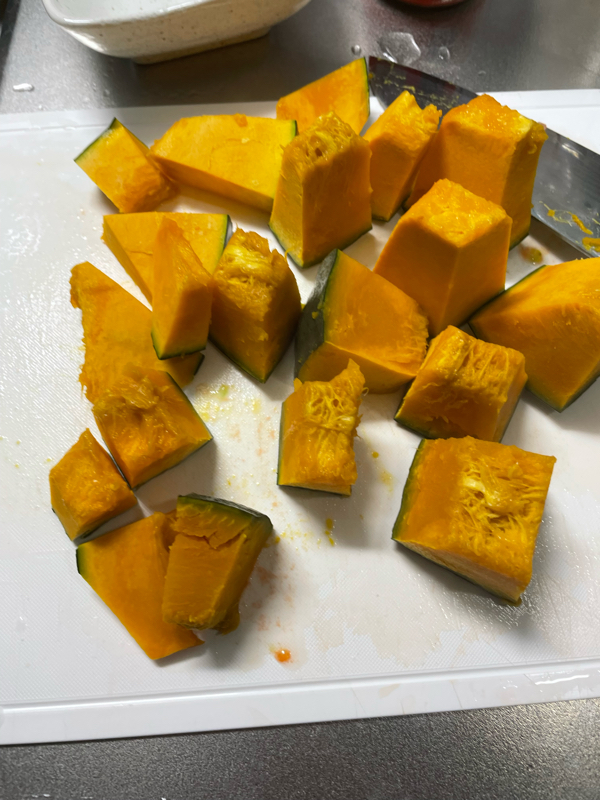 かぼちゃはちょっとレンチンしてから切ったほうがええで