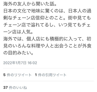 日本人は慎重だからクオリティの安定したチェーン店に入る