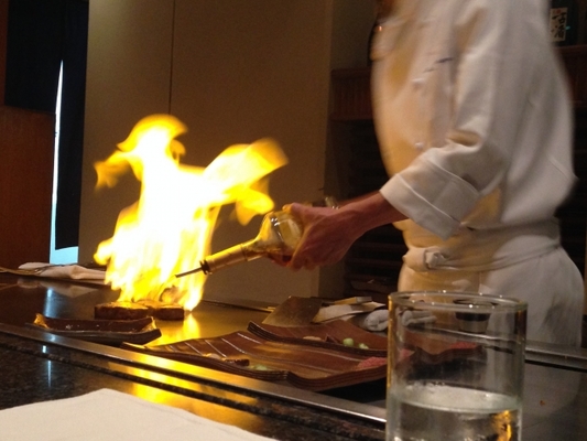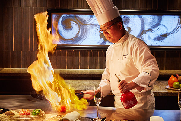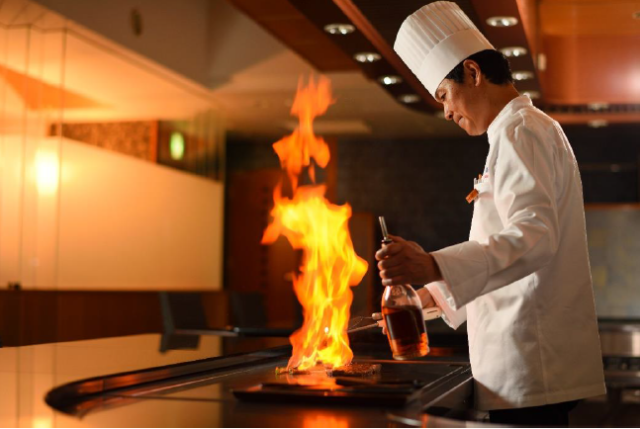 そもそも対面の鉄板料理ならアクリルの仕切り板を用意すればフランベの飛沫も問題なかった