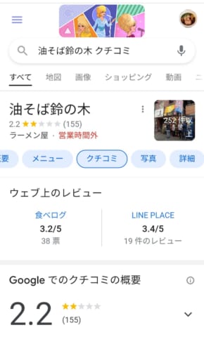 グーグルの低評価は評価数少ないかガチのまずい店かどっちかや