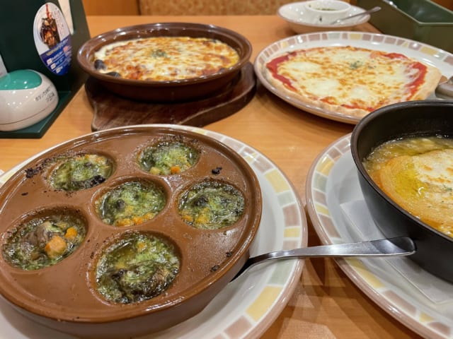 ついつい安いもんで沢山頼んで後半おえっぷってなるけどやっぱサイゼええよな