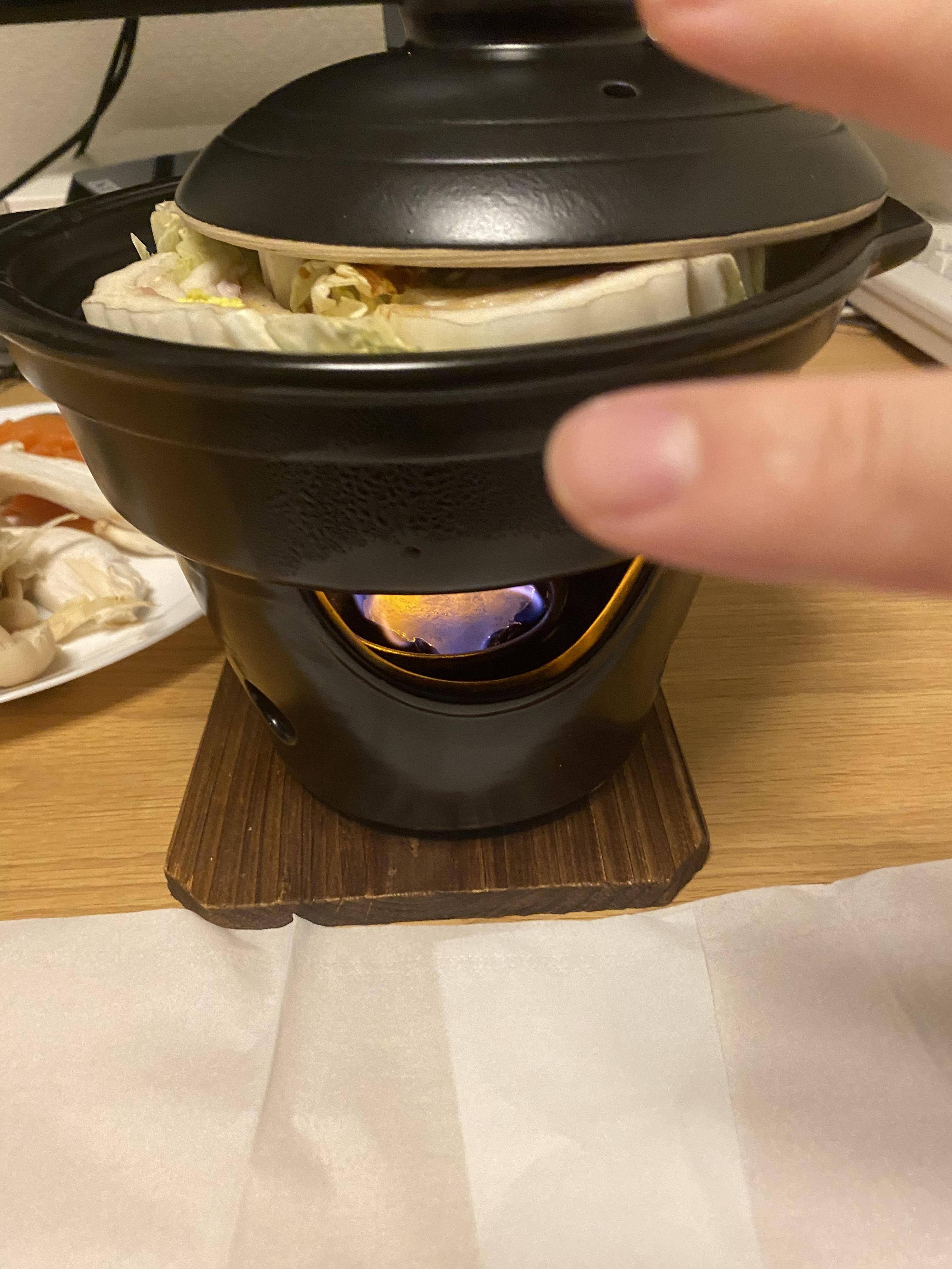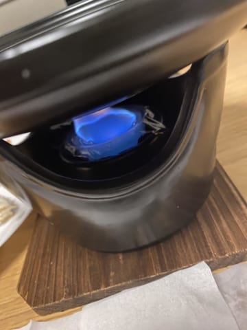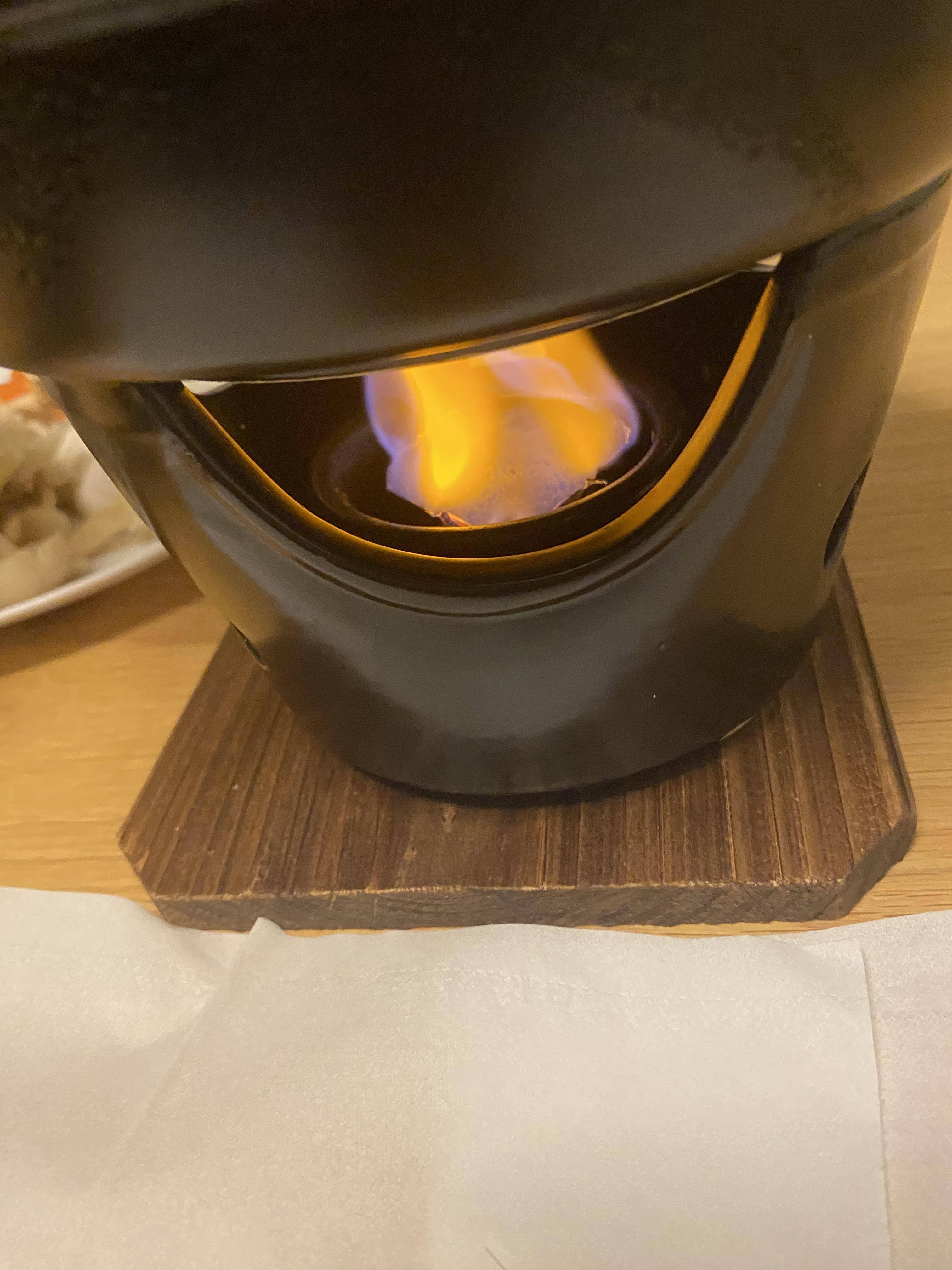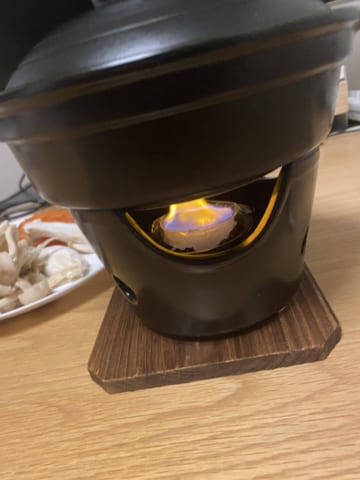 旅館の1人鍋、固形燃料だとしばしば火が通る前に燃え尽きちゃう