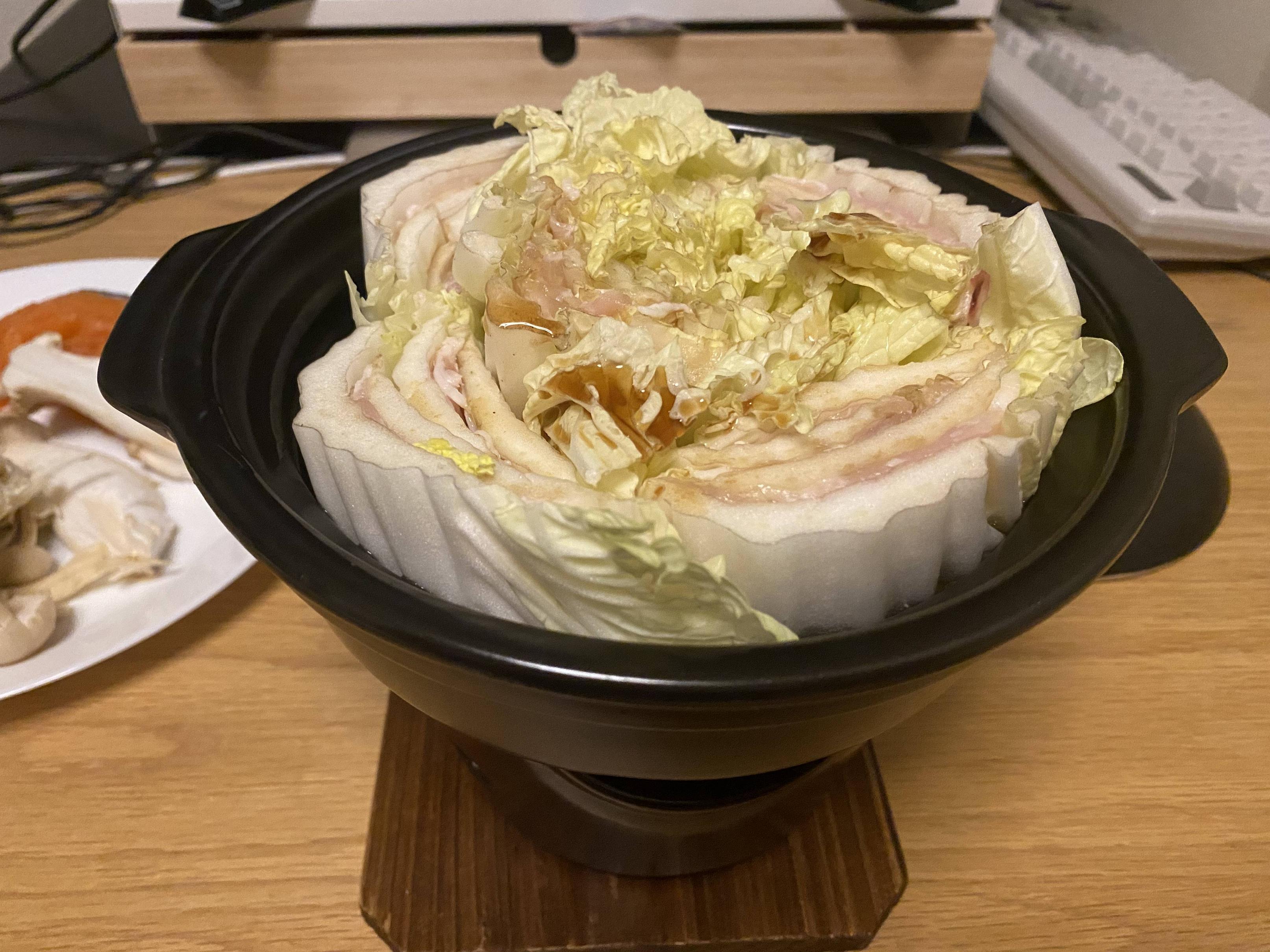 せっかくなら普通の鍋にしたらいいのに白菜豚肉のミルフィーユ鍋かよ