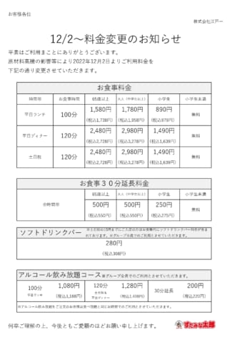 値上げするすたみな太郎もきんぐとかと同じ価格帯の仲間入りやね