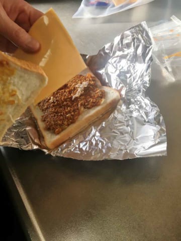 ブリトーが200円以上するのが不満で、食パンにスライスチーズとハム乗っけて
