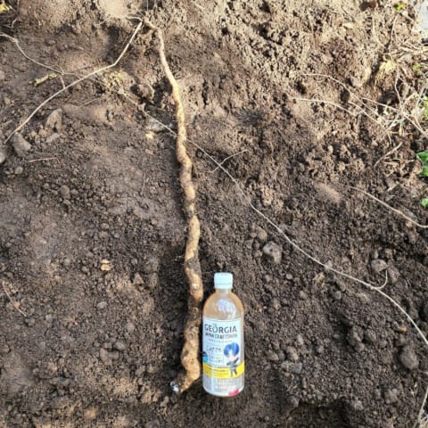 ペットボトルの大きさ測るには自然薯並べればええんやな