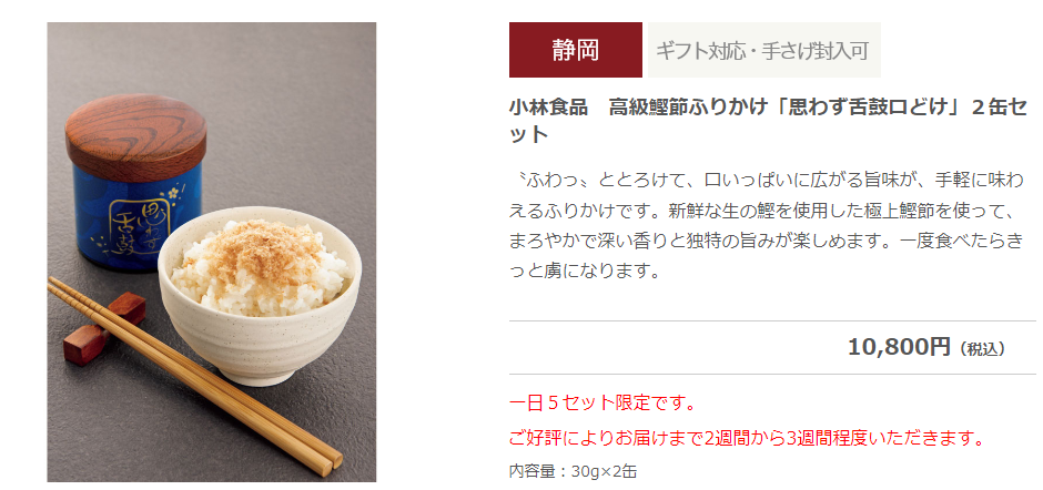 拘りの逸品ふりかけが贈答品として存在してるし、ふりかけが絶対ないというのは極端