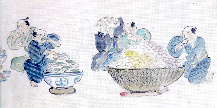 大会の出場者は胃袋自慢の200人ほど。部門は、菓子の部、飯の部、蕎麦の部、うなぎの部、酒の部。出場者の身分は職人から農民、商人、武士とさまざまで、身分の上下関係なくただひたすら“胃ヂカラ”を競いました。