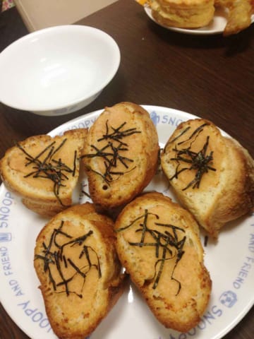 チーズフォンデュに使うフランスパン残りでタラコフランスパン