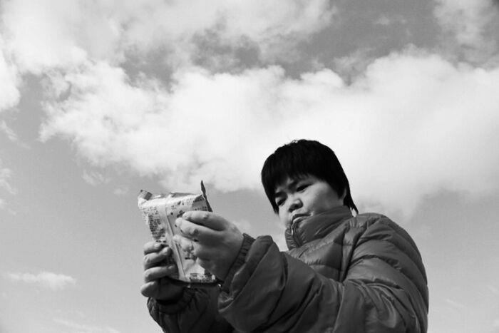 麺の感触なのか、袋に反射する光の加減か、または擦っている時に生じる音なのか。 何が彼女をそこまで惹きつけるのか、その要因は彼女だけにしかわからない。