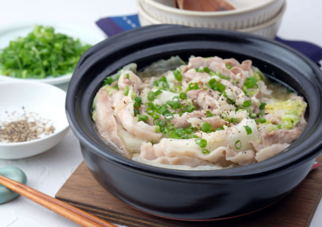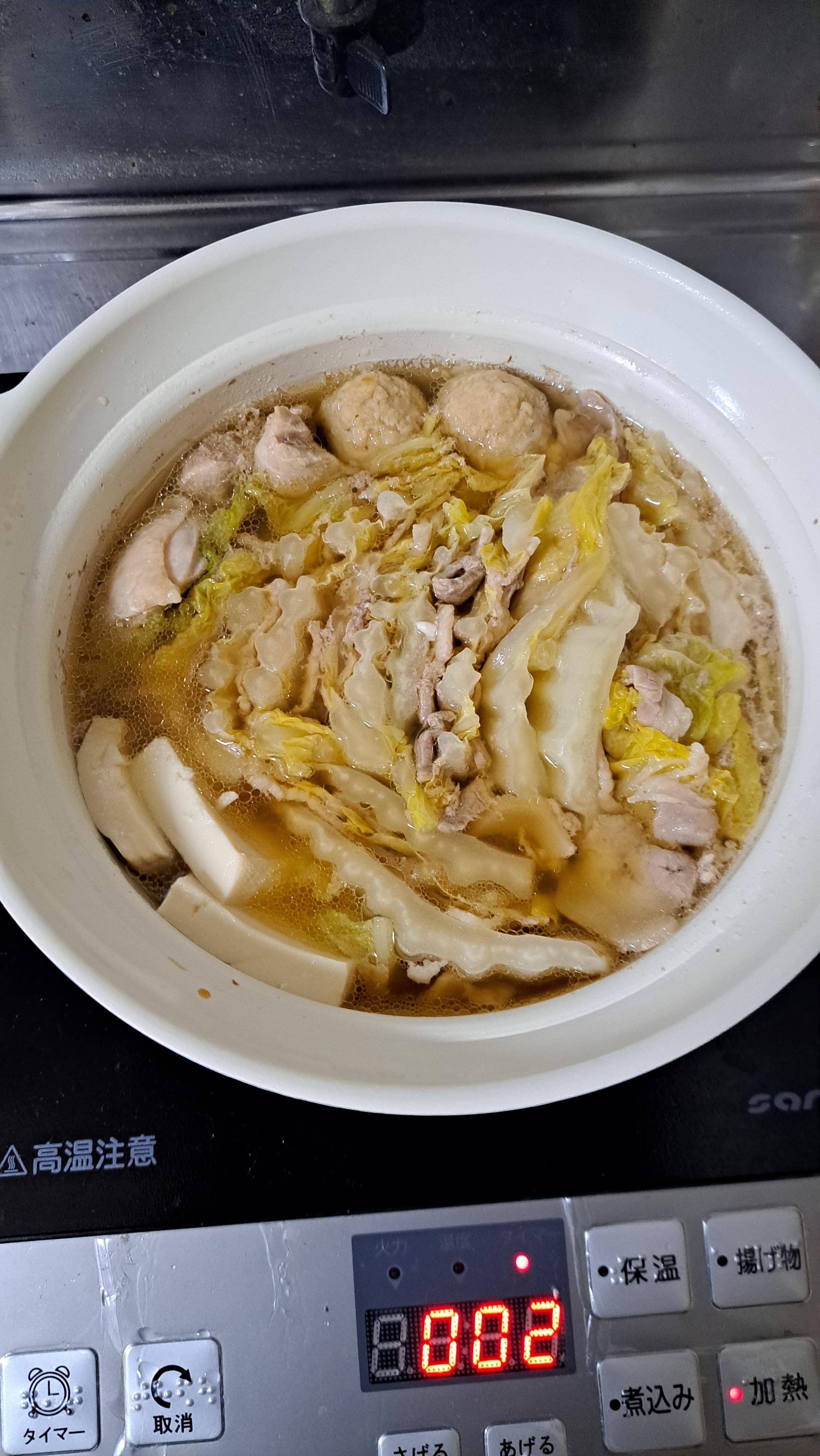 白菜の白い部分豚肉青い部分の順に鍋ぶち込んでフタして放置して最後ちょっと混ぜるだけや