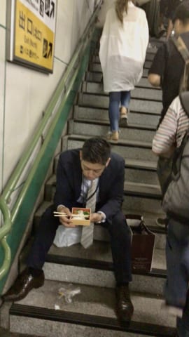 ホコリまみれの駅のベンチで弁当食ってるのいるだろ