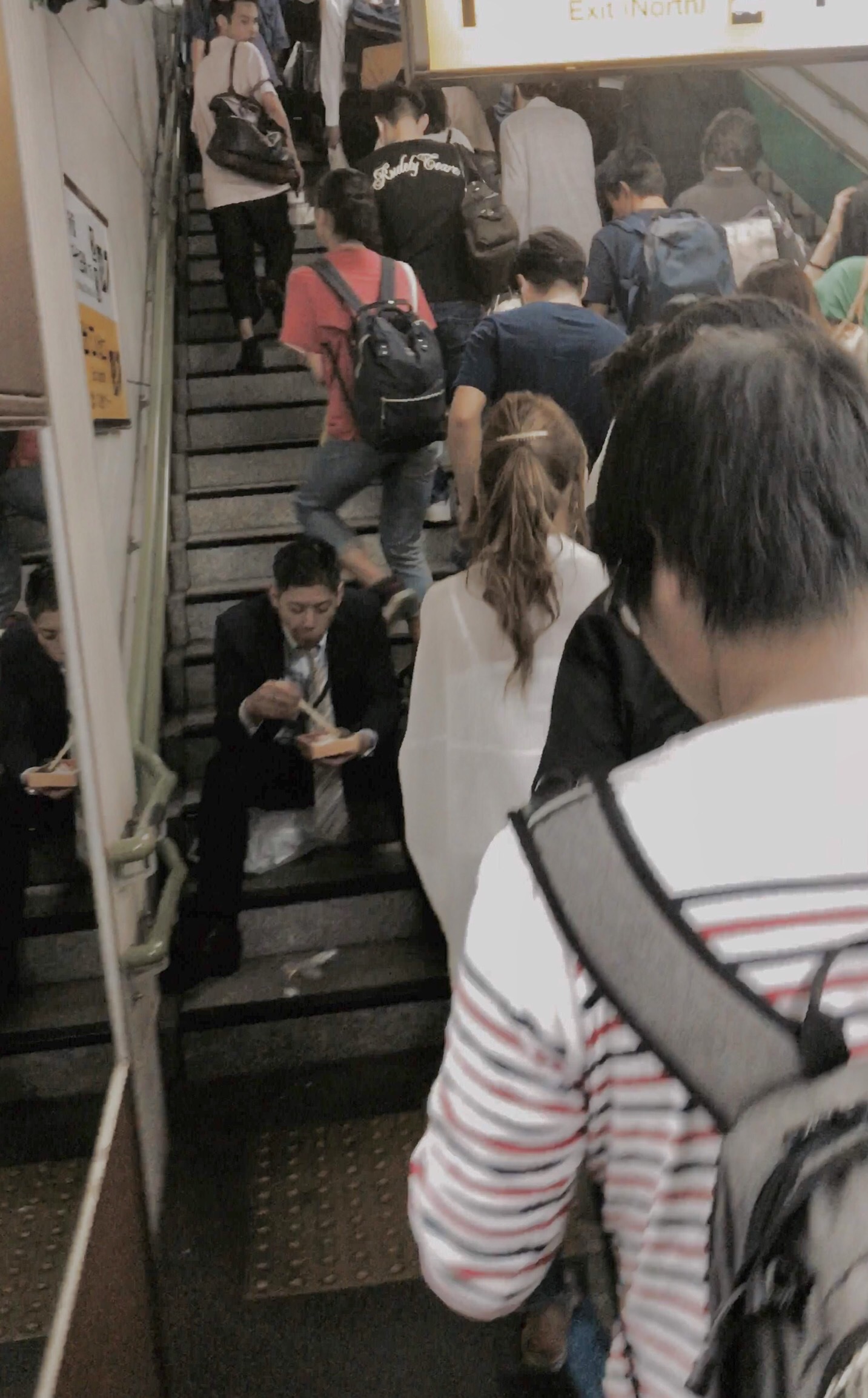 大阪東京いたときは通勤電車で飯食ってる奴はみたことないな