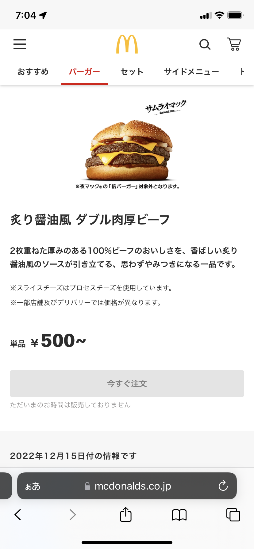 サムライマックとかやらんでいいからテキサスバーガー常設しろ