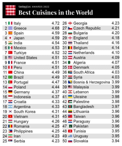 『飯がウマい国ランキング☆』 みたいなのは 7~10位辺りが望ましい