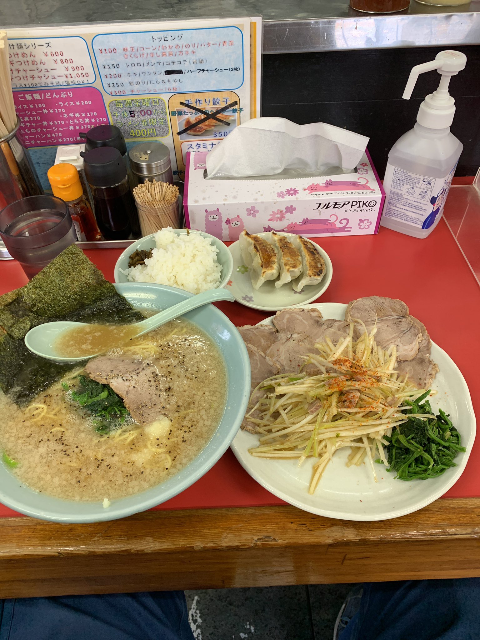 チャーシュー、卵、ねぎ、メンマでええな?