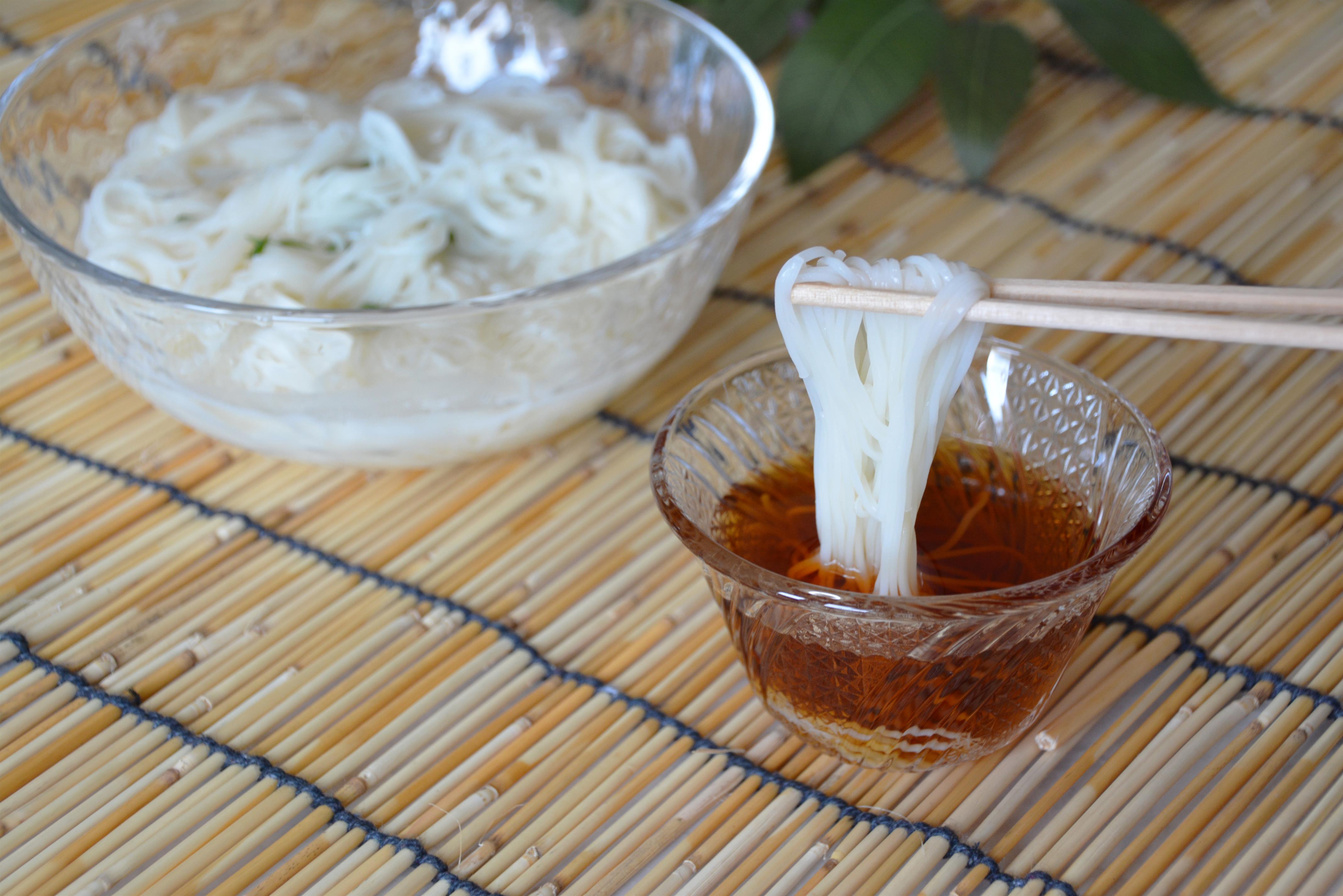 温かい汁をかけたそうめんを、にゅうめんと言う。