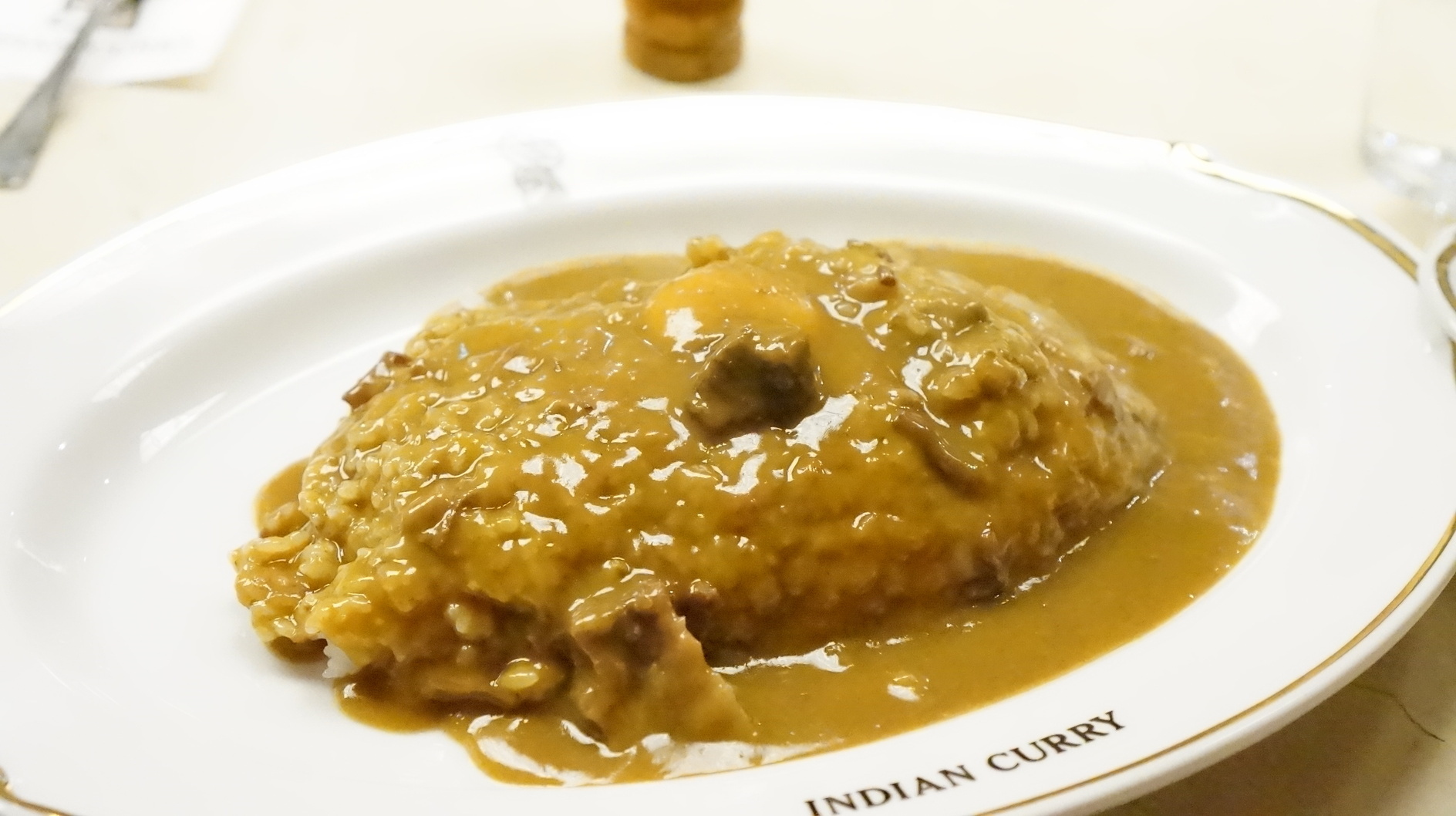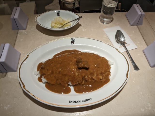 ここのカレー、一口目は一瞬甘さを感じるのに後から辛さがくるのが好き インデアンカレー 丸の内店 https://tabelog.com/tokyo/A1302/A130201/13020091/